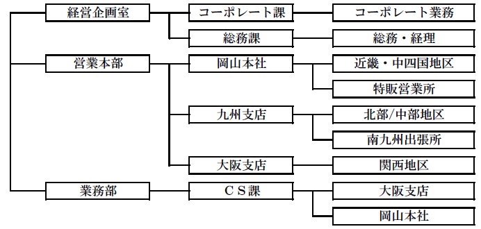 - 組織変更に伴い、業務部メンテナンス課を業務部CS課へ、 経営企画室を分割し総務課・コーポレート課へ組織体制を変更